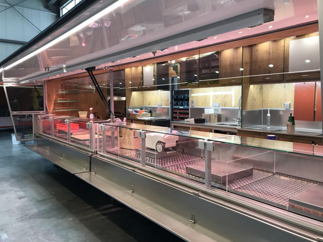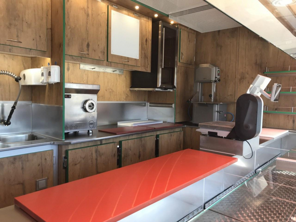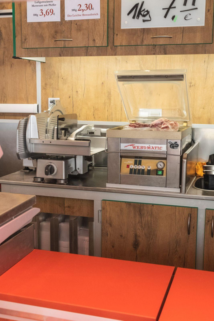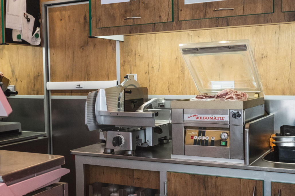 - Schneidemaschinen, Fleischsäge, Vakuumiergeräte, Waagen und Grill sind bereits vorhanden