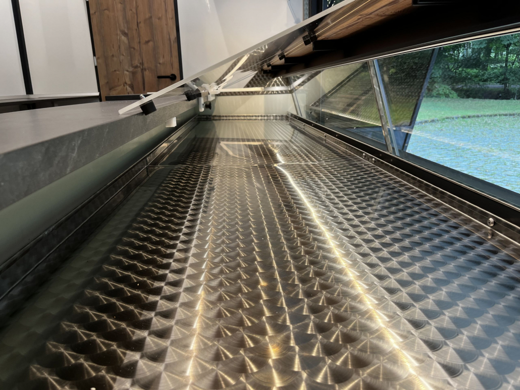 - Umlufttheke mit liegendem Verdampfer unterhalb des Klappbleches