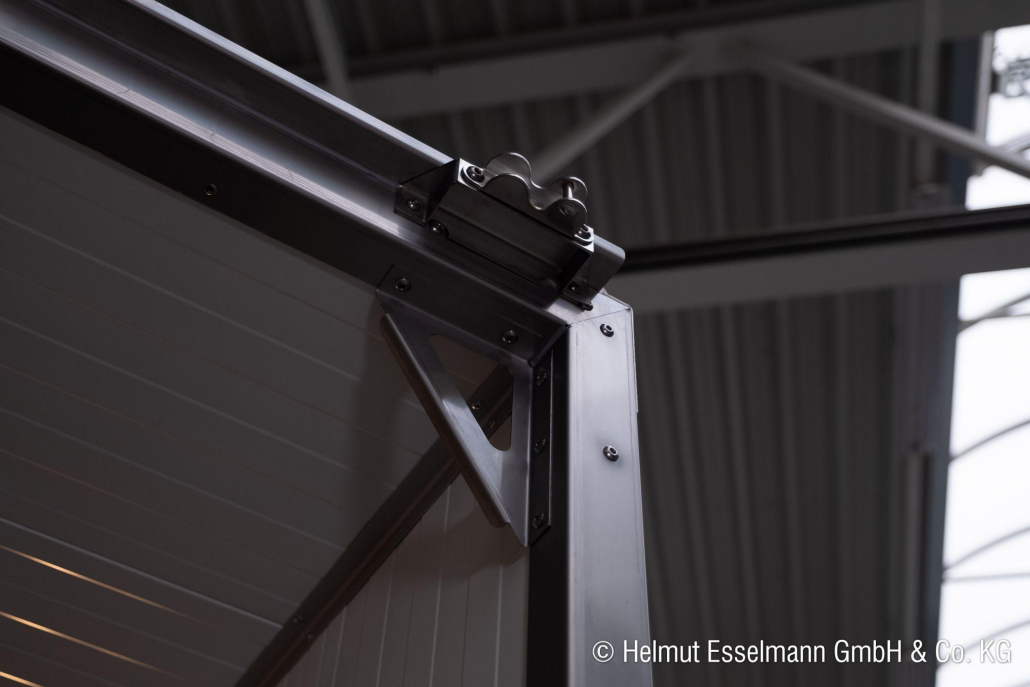 Außenfarbe ähnlich RAL 9010 reinweiß, Eckprofile silber-eloxiert E6 EV1, ohne Beschriftung