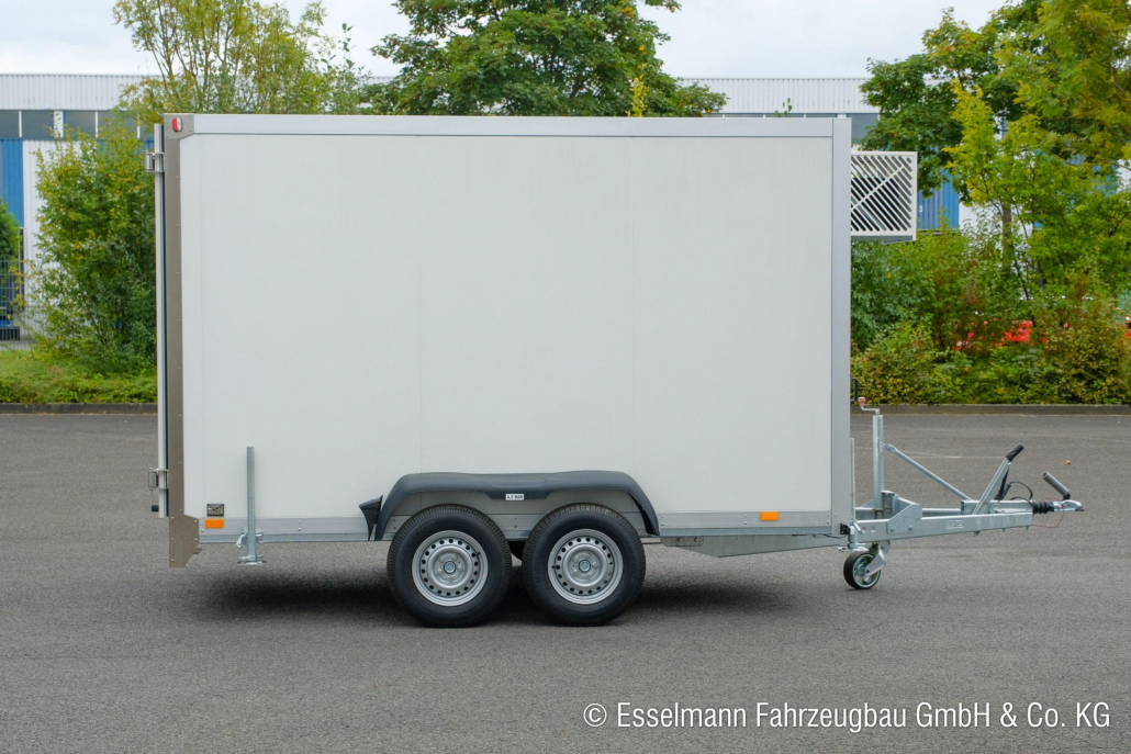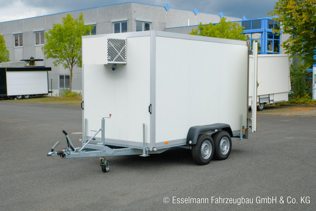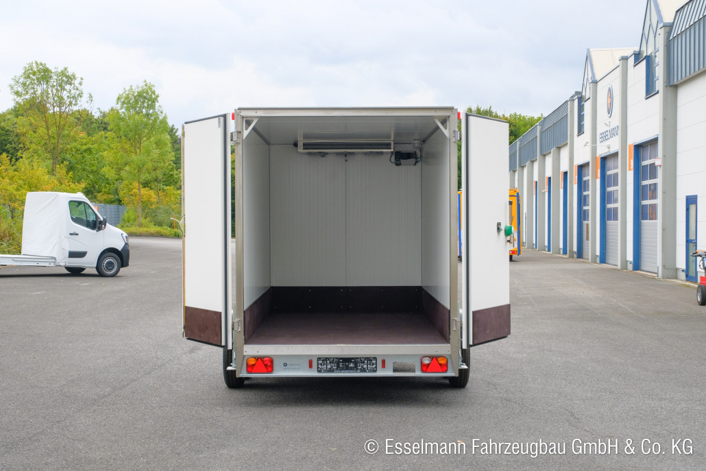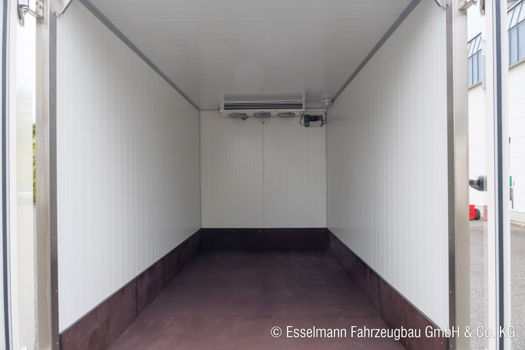 geschweißter, feuerverzinkter Tieflader-Fahrgestellrahmen, FePur© Kofferaufbau mit 60mm Isolierung, bündiges Edelstahlheckportal in verstärkter Ausführung, verstärkte Ladekante aus 2mm Edelstahl, Doppelflügeltür über die volle Ladebreite mit Presshebelverschluss und Notentriegelung, Türfeststeller, Profilzylinderschloß mit Standardschließung, Standflügel mit Treibriegelverschluß, Stellplatz für 5 Euro-Paletten, Innenraumbeleuchtung, Anschluss mittels CEE Wandstecker 3x16A, Zuleitungskabel mit CEE-Kupplung 3x16A / Stecker, Länge: 2m, COC-Papier für die Fahrzeug-Zulassung